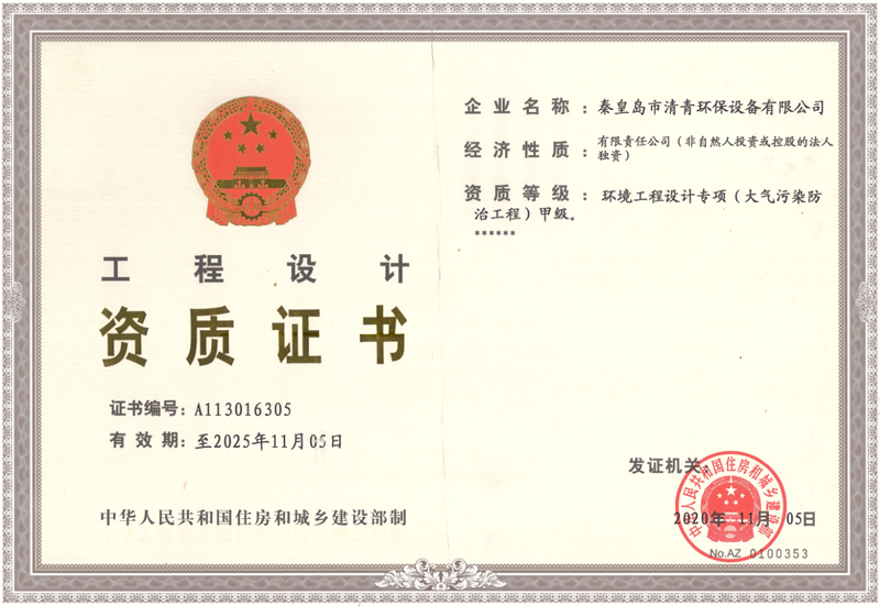環(huán)境工程設(shè)計(jì)專項(xiàng)甲級(jí)資質(zhì)