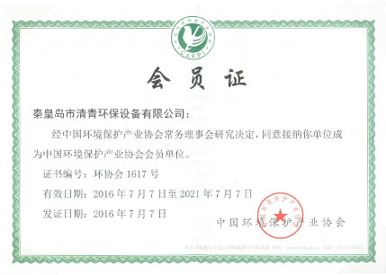 中國環(huán)保產(chǎn)業(yè)協(xié)會會員證